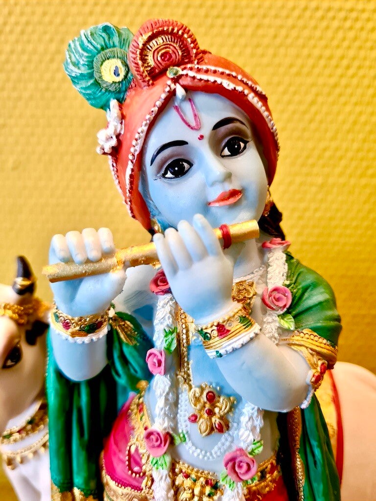 Krishna is de allerhoogste bestuurder. Hij heeft een eeuwige, gelukzalig, spiritueel lichaam. Hij is de oorsprong van alles. Hij heeft géén andere oorsprong want Hij is de hoogste oorzaak van alle oorzaken. – Brahma-samhita 5.1.