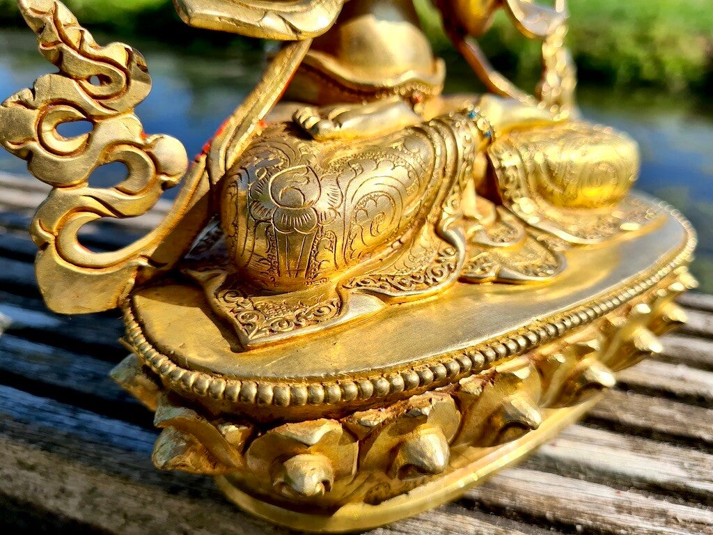 Zijn mantra is "Om Mani Padme Hum" vertaald als "De parel in de lotus" betekent de ondeelbaarheid van mededogen en wijsheid