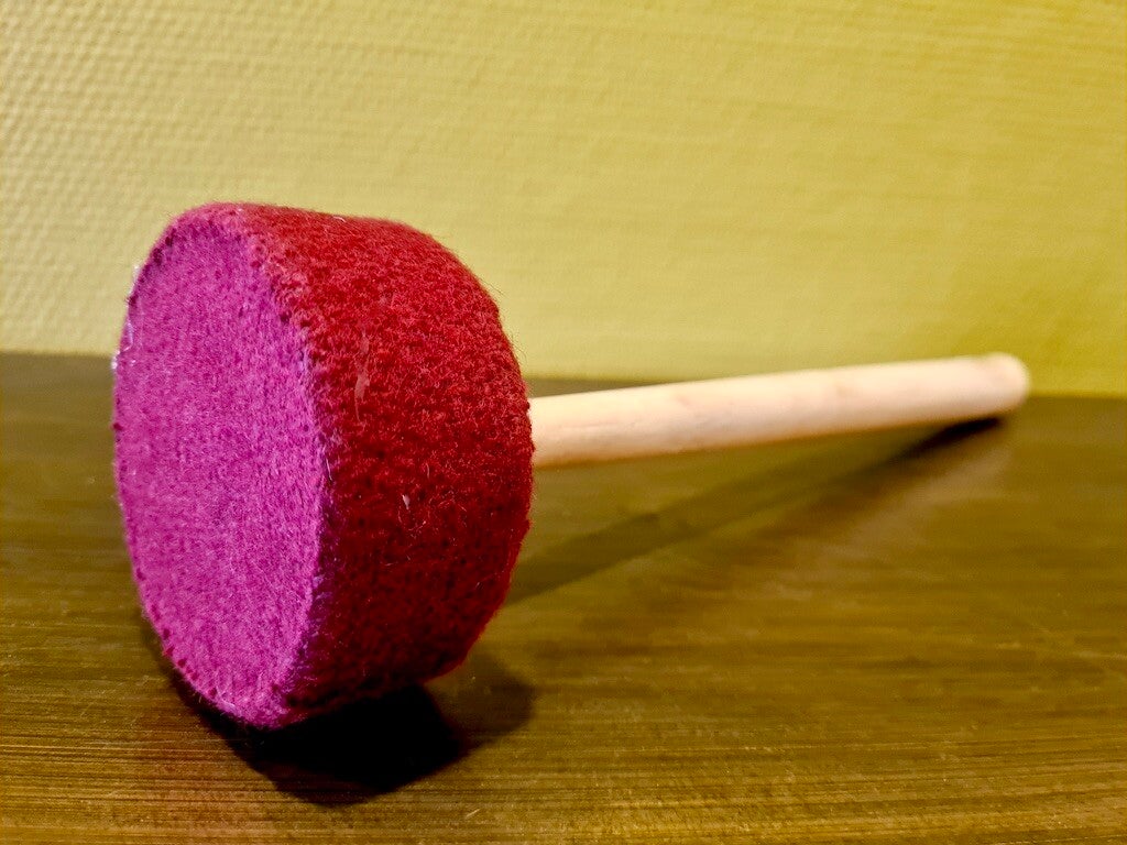 Een klopper met vilten top gemaakt voor het bespelen van grote klankschalen.
