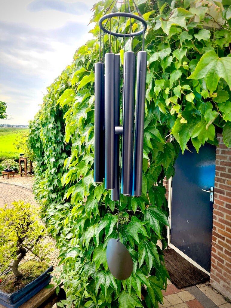 Een heerlijk rustgevend geluid. Omdat de buizen wat groter zijn worden de klanken ook wat zwaarder. Een harmonieuze klank en de acht buizen vormen tezamen een toonladder.