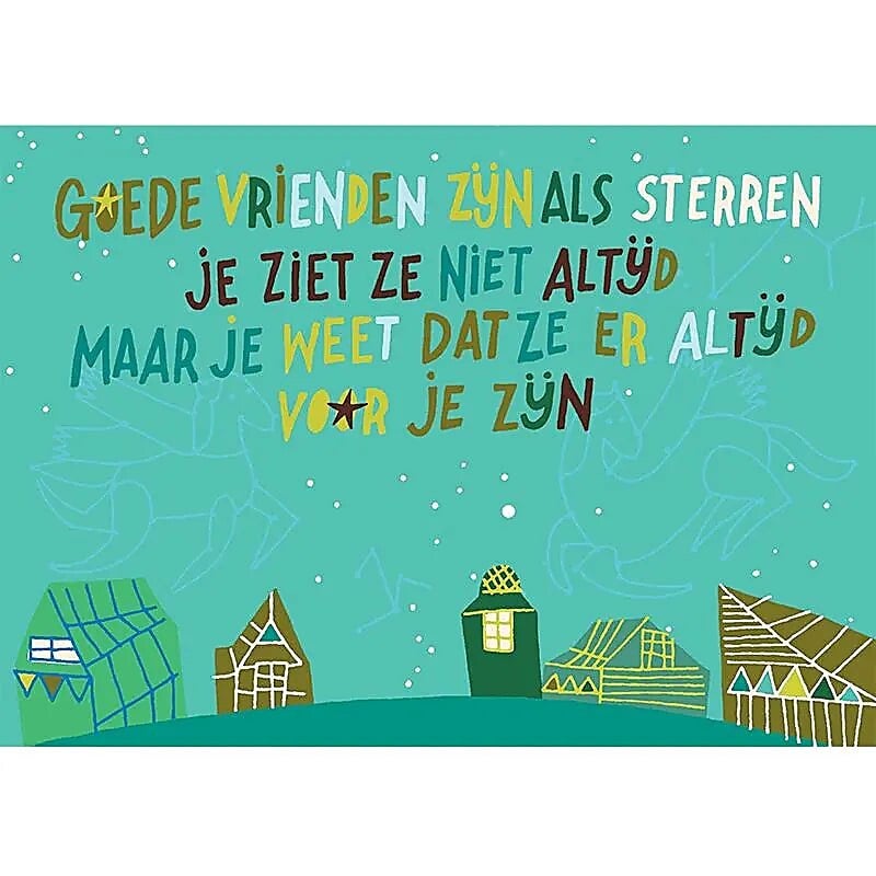 Ansichtkaart: 'Goede vrienden zijn als sterren je ziet ze niet altijd maar je weet dat ze er altijd voor je zijn'.
