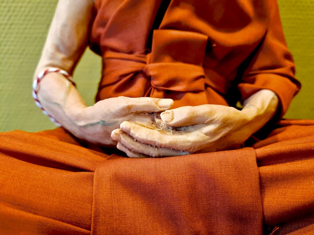 De grootte van deze levensechte monnik is medium (26 cm). Het meest mooie formaat voor de expressie. Hoge kwaliteit.