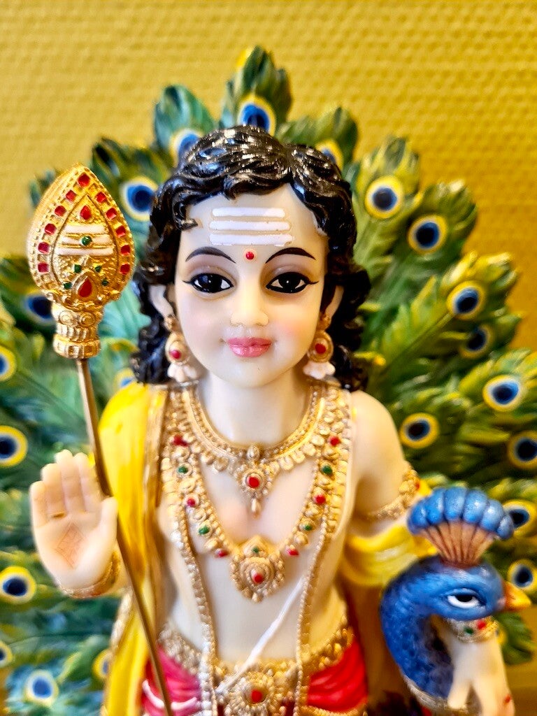 Kartikeya met pauw 29 cm