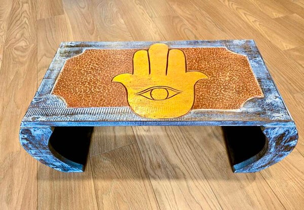 Alleen verkrijgbaar in onze fysieke winkel! Oosterse houten tafeltjes in verschillende afmetingen. De kleinste tafel is 45 cm breed (79,99 euro), medium 67 cm breed (139,99 euro) en de grotere tafel is 89 cm breed (179,99 euro). Afgebeeld staat de tafel van 67 cm.