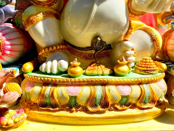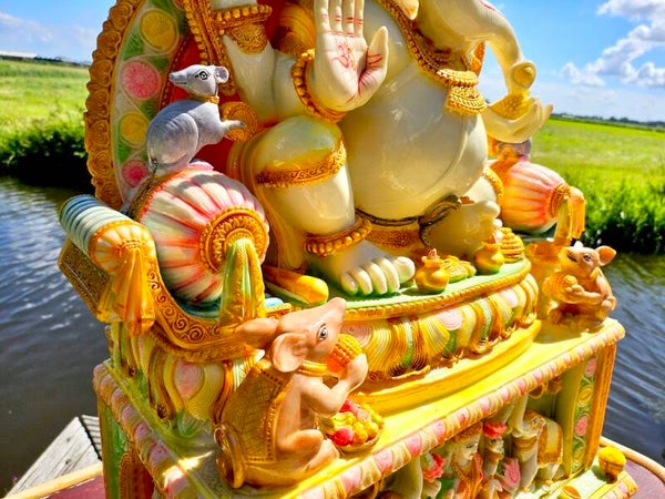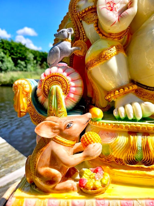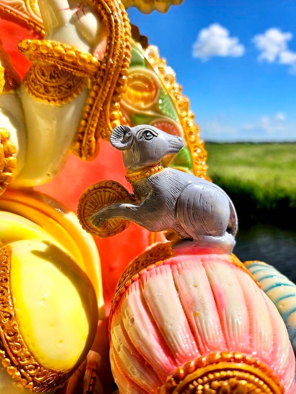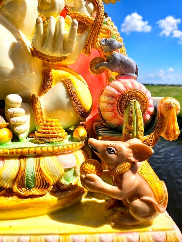 Een muis naast de voeten van Ganesha