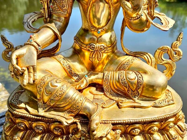 Materiaal: Koper/brons, vuurverguld 24 karaat goudlaagje inclusief goldface handgeschilderd. Kunstwerk door Nepalese artiesten in zeer hoge kwaliteit. Verloren wasmethode.