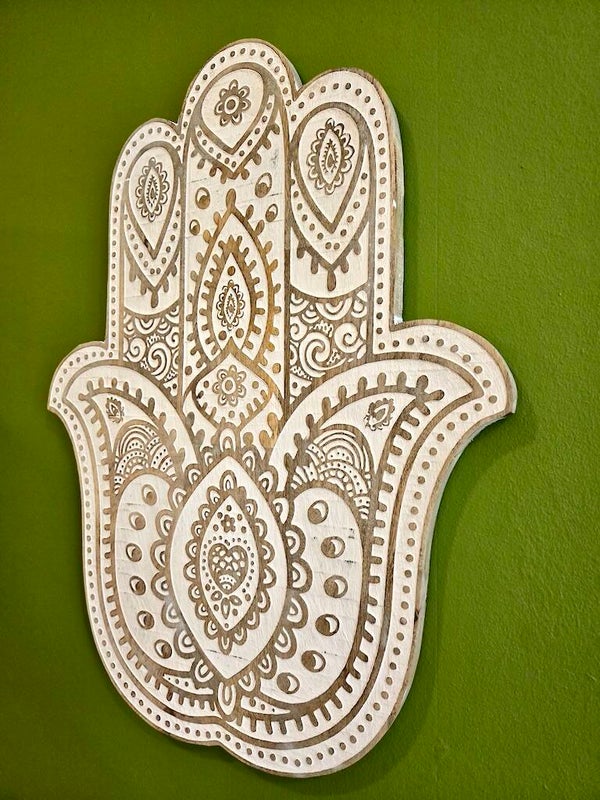 De Hand van Fatima, ook wel de Khamsa of Hamsa genoemd, is een symbool dat vaak wordt geassocieerd met bescherming tegen het kwaad en negatieve invloeden. Het wordt vaak gebruikt in de islamitische cultuur, maar ook in andere culturen in Noord-Afrika en het Midden-Oosten. Het symbool wordt vaak afgebeeld als een hand met vijf uitgestrekte vingers, soms met een oog in het midden van de hand, wat staat voor bescherming tegen het "boze oog". Het wordt ook geassocieerd met kracht, zegeningen en geluk.