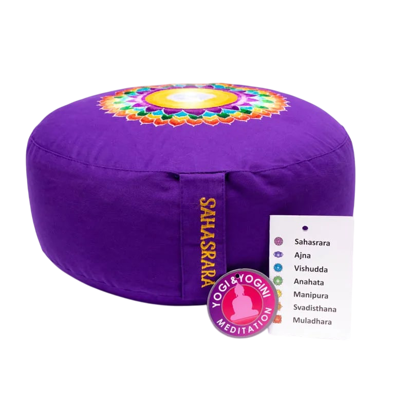 Ervaar comfort en stabiliteit tijdens je meditatie met dit prachtige kussen van Yogi & Yogini. Het ontwerp is speciaal geïnspireerd op het Sahasrara chakra, ook wel het kruinchakra, en is afgewerkt met een subtiele borduring.