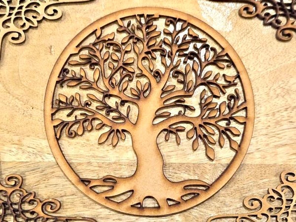 Tarotdoos of sieradendoos met door laser uitgesneden levensboom symbool. Perfect om kleine kostbaarheden, sieraden of persoonlijke herinneringen veilig in te bewaren. Denk overigens ook aan gelukspoppetjes, visitekaartjes, inzichtkaarten, of gewoon wat lekkers :). Gemaakt van mangohout, met rode voering.