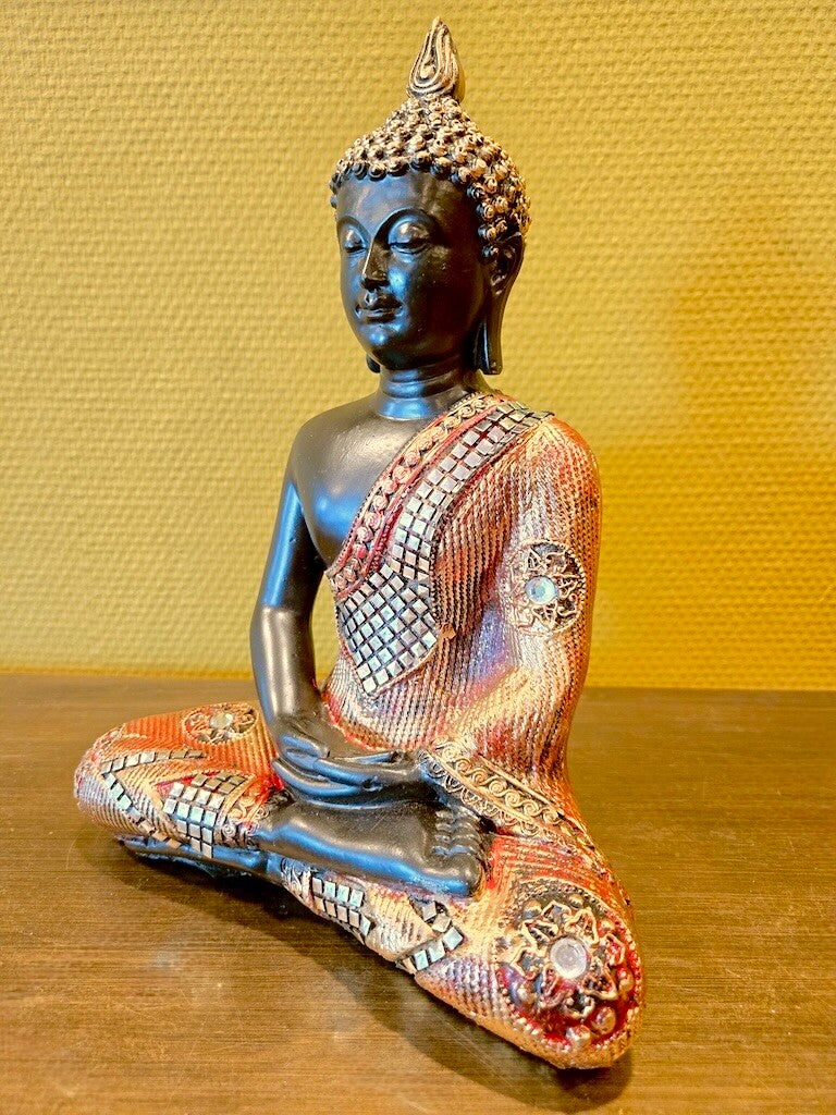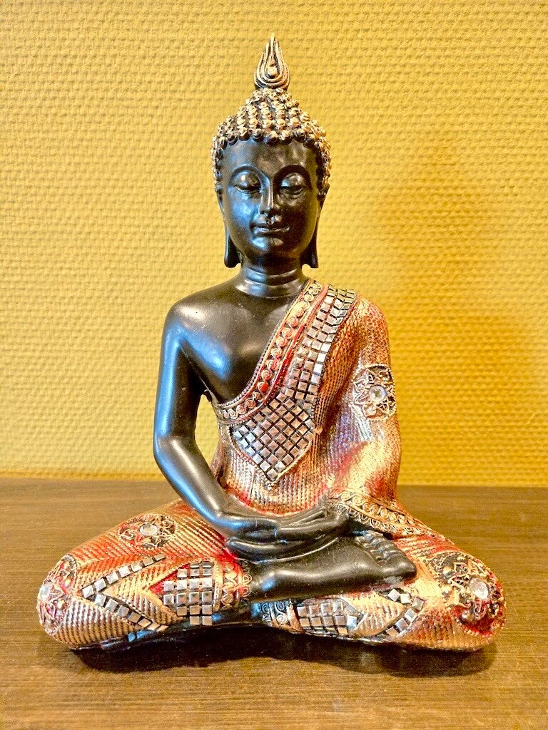 Prachtig bewerkt Boeddha beeld met vriendelijke uitstraling.