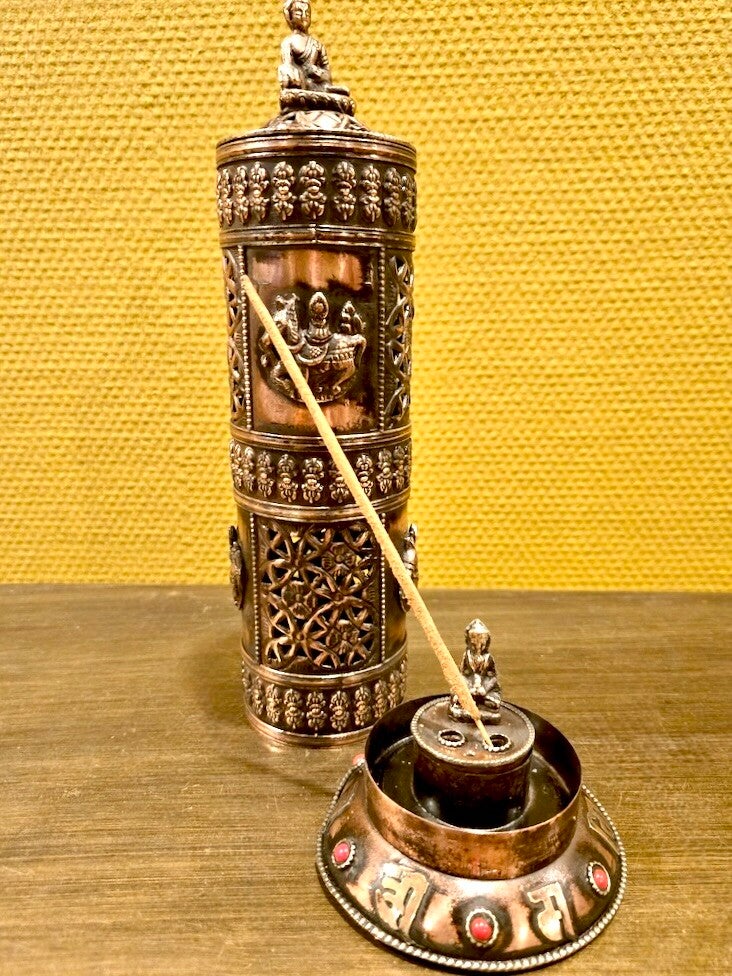 Helaas worden er veel imitatie wierookbranders zoals deze aangeboden van een geheel andere kwaliteit. Wij importeren rechtstreeks bij Tibetanen die in Nepal woonachtig zijn. Daardoor kunnen wij het handwerk/vakmanschap en de koperen kwaliteit garanderen.