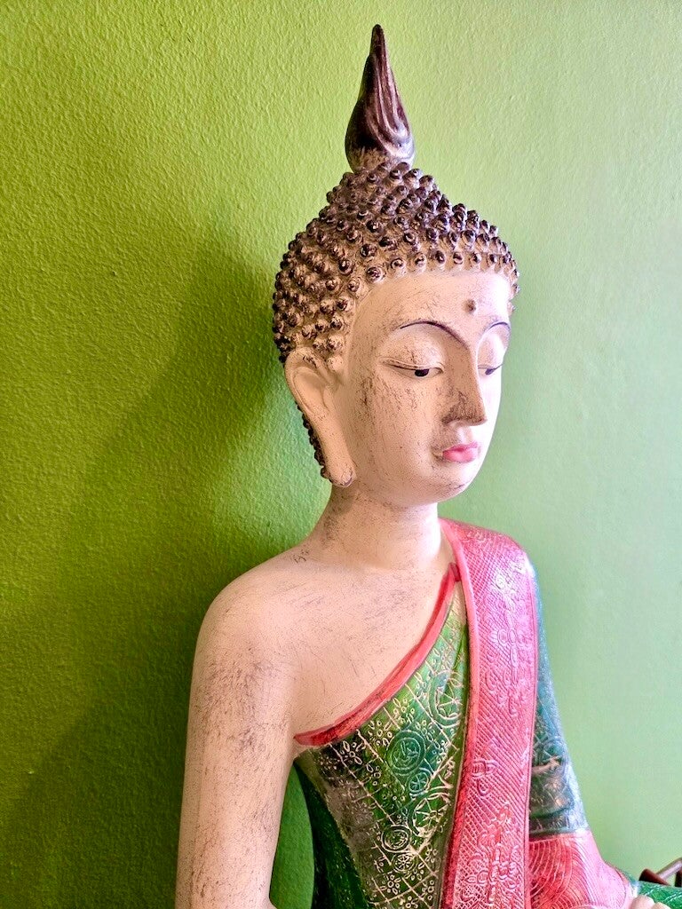 De lotusbloem staat symbool voor zuiverheid en verlichting, omdat zij prachtig bloeit boven het modderige water waarin zij wortelt. In de kunst wordt de Boeddha vrijwel altijd mediterend in deze houding afgebeeld, wat symbool staat voor een onwankelbare geest en innerlijke rust.