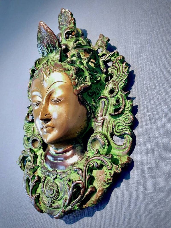Een werkelijk bijzonder en exclusief bronzen masker van Boeddha in meditatieve staat.