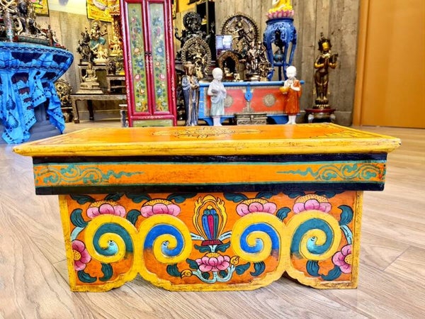 Tegenwoordig worden dergelijke puja tafels ook decoratief gebruikt voor in huis of meditatieruimtes.