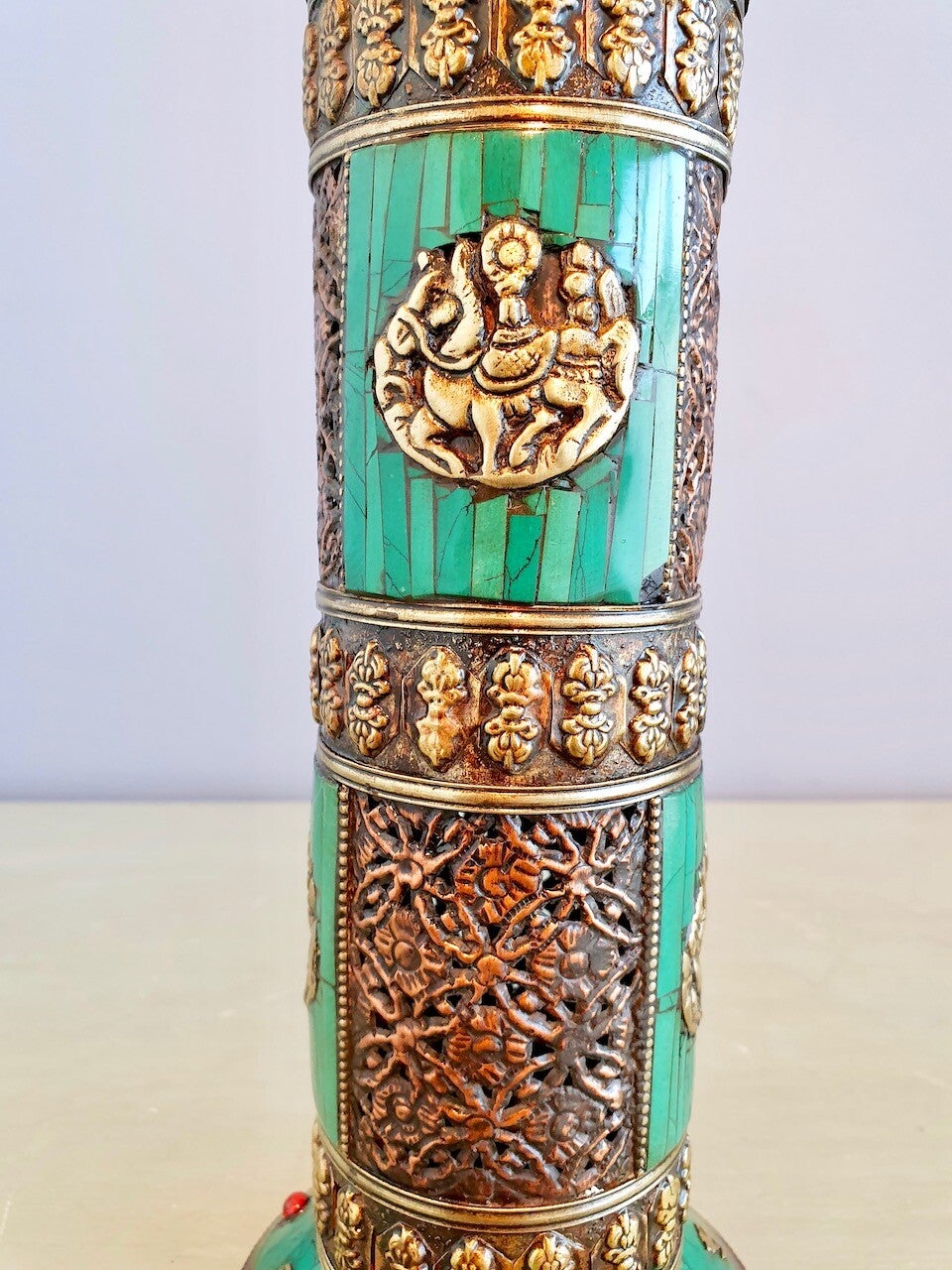 Gemaakt in Nepal door Tibetaanse vluchtelingen. De wierookbrander bestaat uit drie onderdelen.