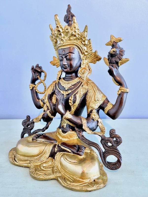 Een prachtige Chenrezig beeld. Net zo mooi als dat je hem op de foto ziet. Heel fijn om te weten waar dit beeld precies voor staat en de betekenissen van wat hij vast houdt.