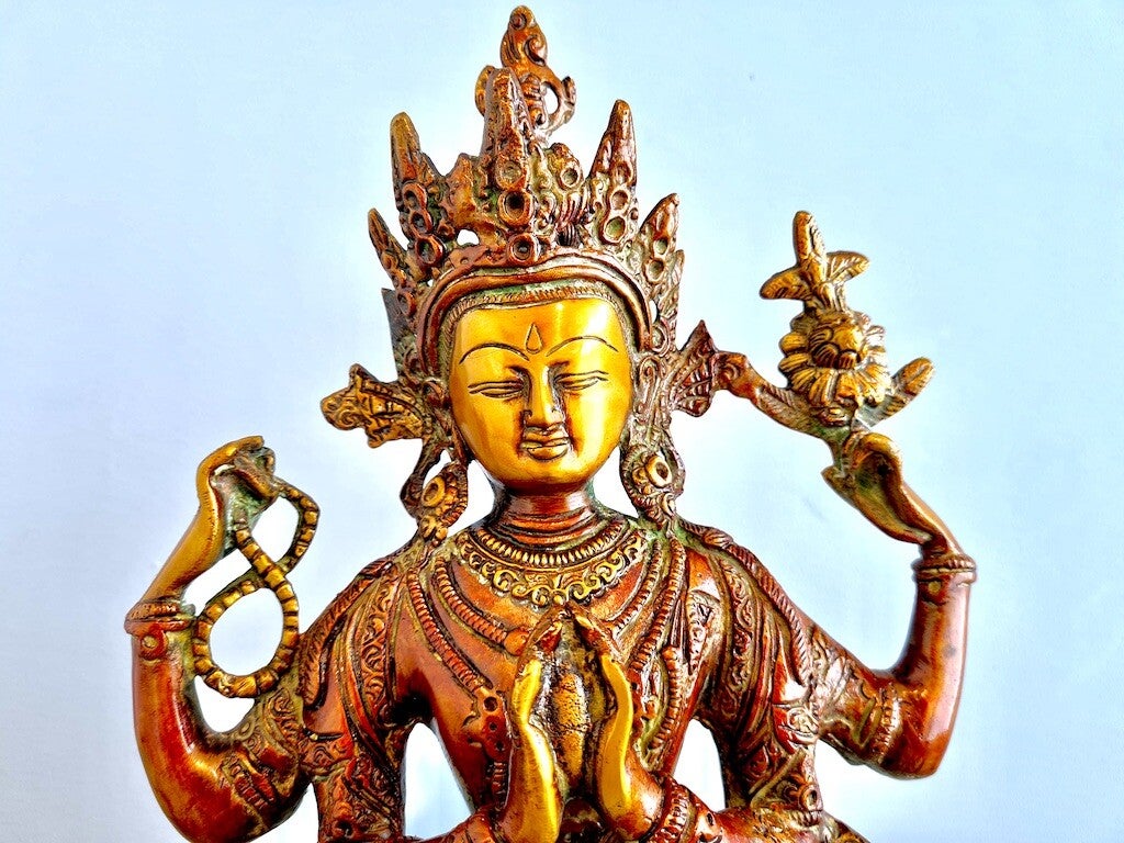 Zijn mantra is "Om Mani Padme Hum" vertaald als "De parel in de lotus" betekent de ondeelbaarheid van mededogen en wijsheid