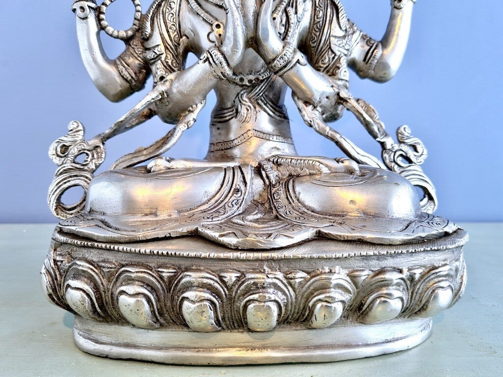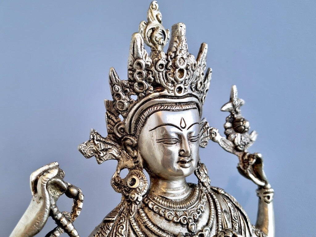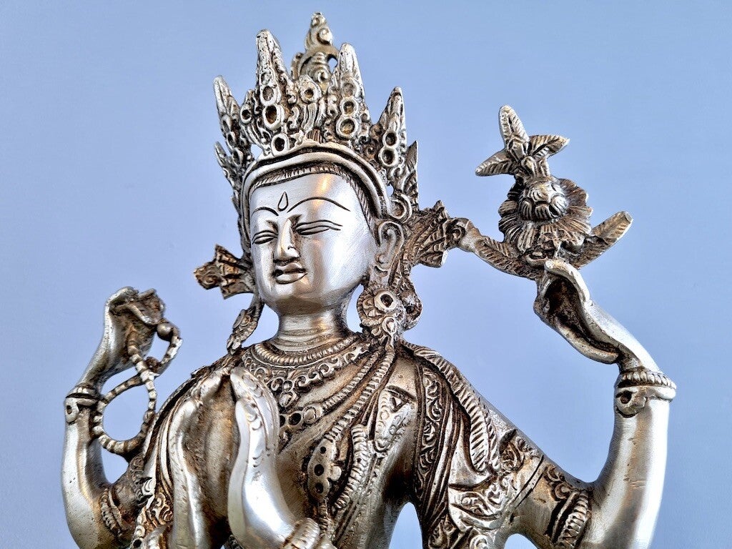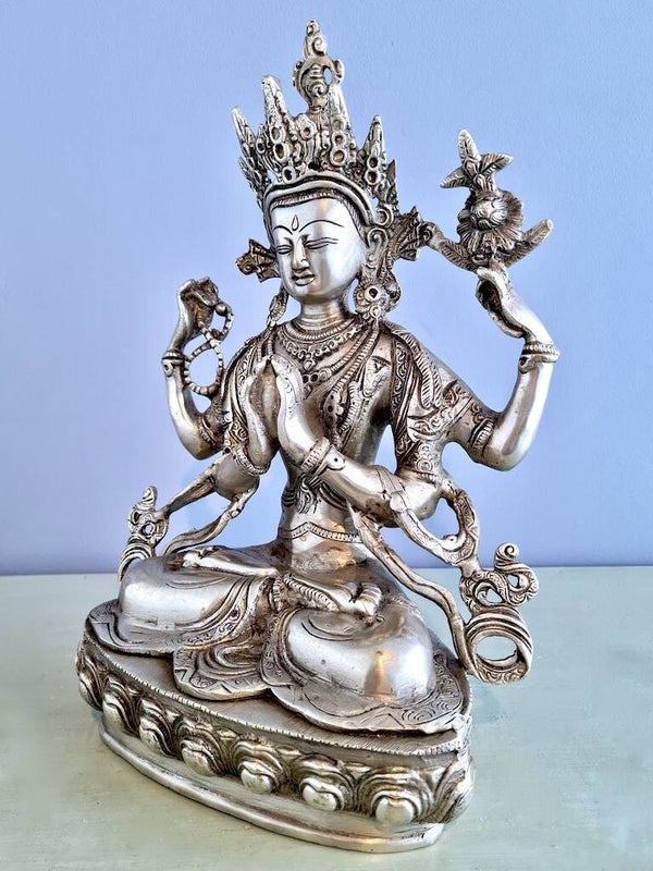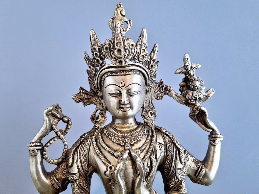 Zijn mantra is "Om Mani Padme Hum" vertaald als "De parel in de lotus" betekent de ondeelbaarheid van mededogen en wijsheid.