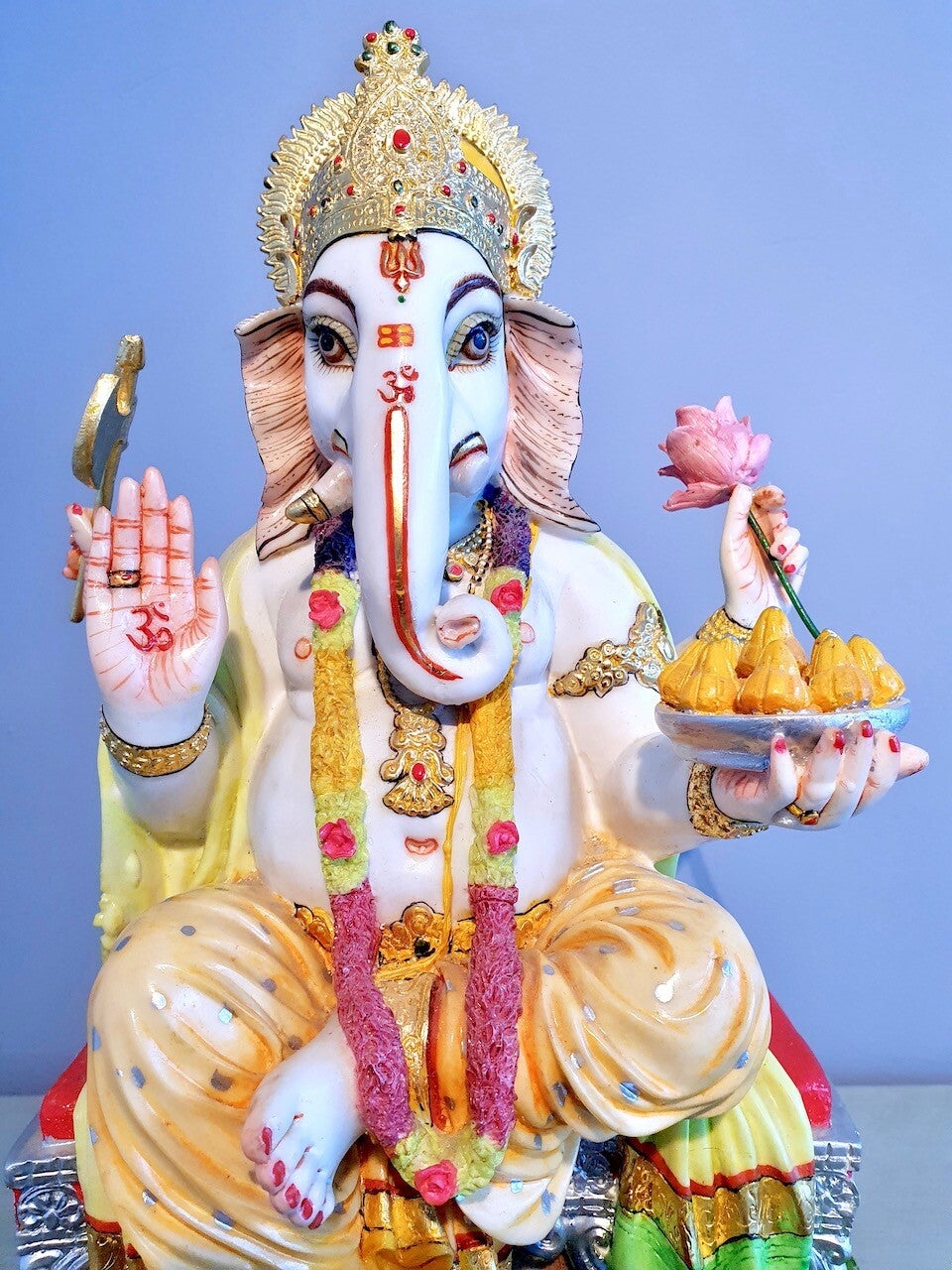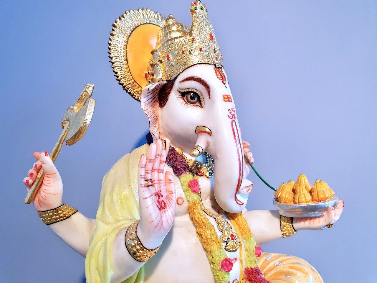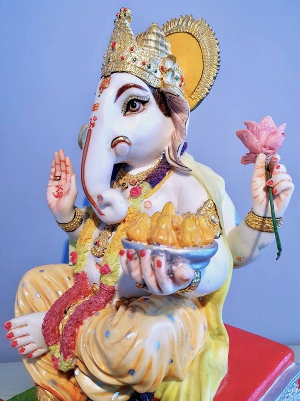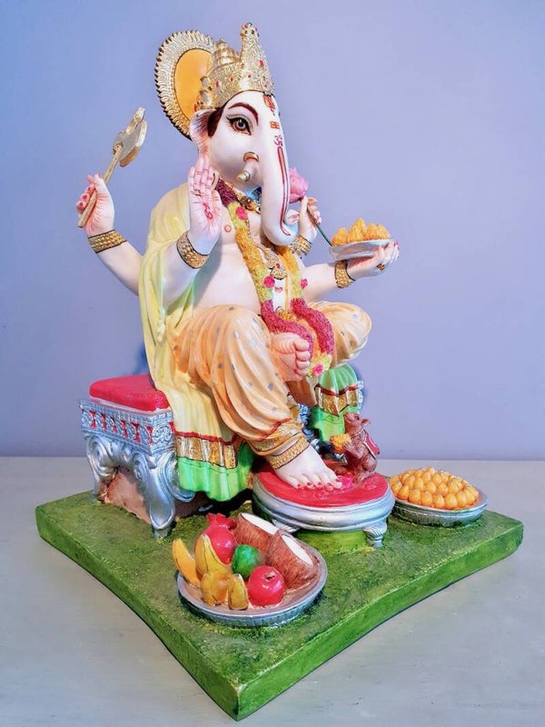 Daarnaast is Ganesha de god die ervoor zorgt dat kinderen altijd te eten hebben, vandaar dat hij afgebeeld wordt met schalen vol snoep en lekkers waaraan hij zich regelmatig ook zelf tegoed doet!