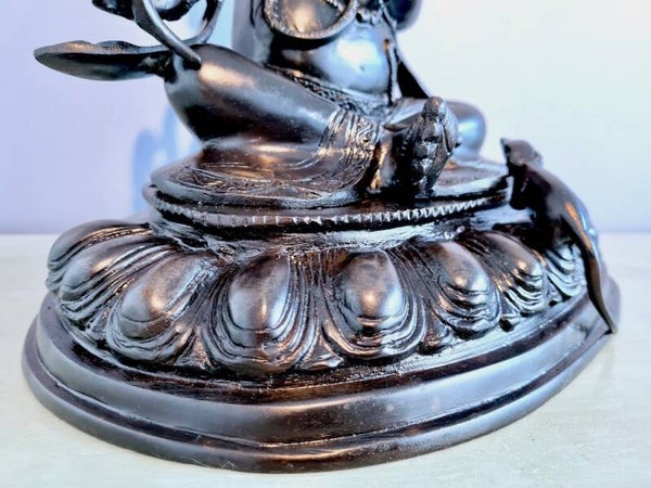 Materiaal: Brons, zwart en kleine bruine kleuraccenten her en der. (Tip: Wrijf het beeld twee keer per jaar in met bijvoorbeeld een beetje bijenwas. Dan blijft het beeld mooi en komen de details tot hun recht).