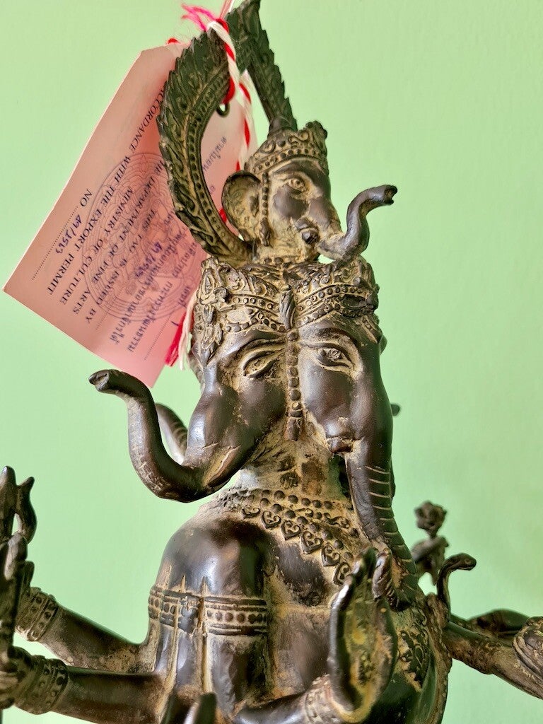 Panchamukhi Ganesha wordt hier dansend getoond met vijf gezichten!