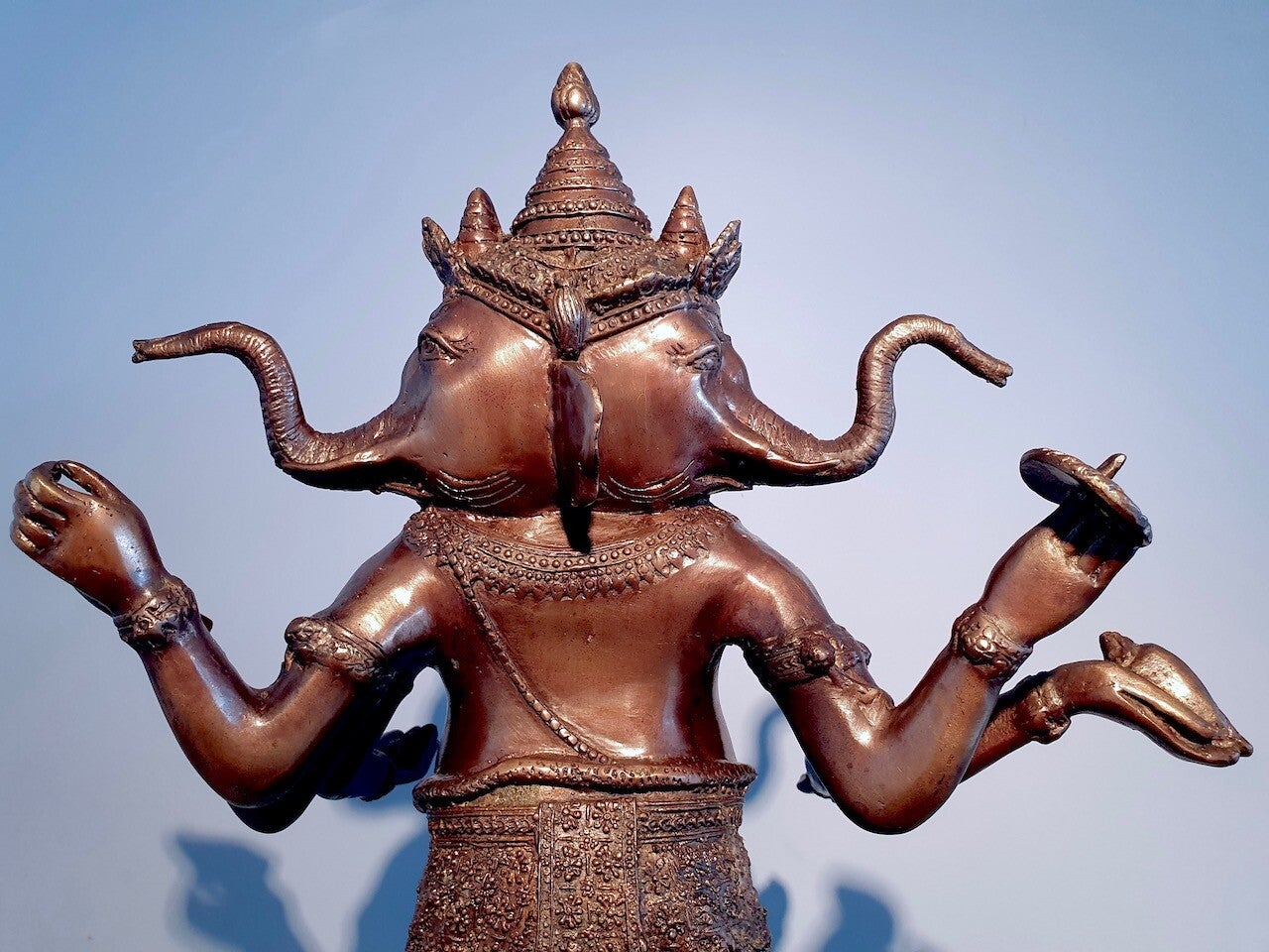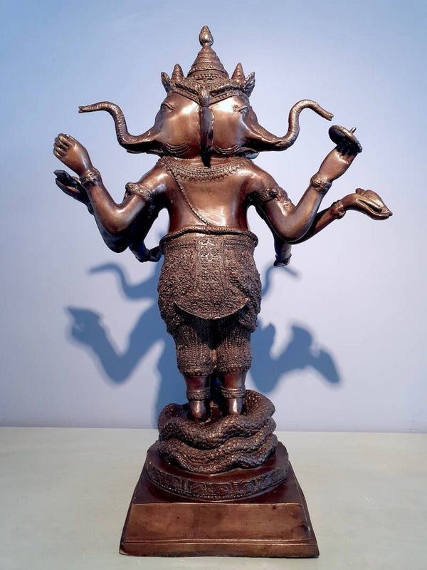 Ganesha met drie hoofden wordt Trimukhi Ganapati genoemd. Vanuit alle hoeken is het een prachtig beeld.