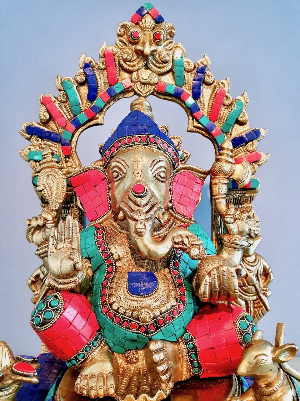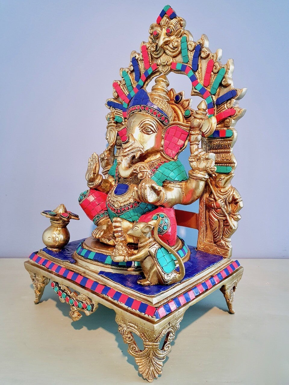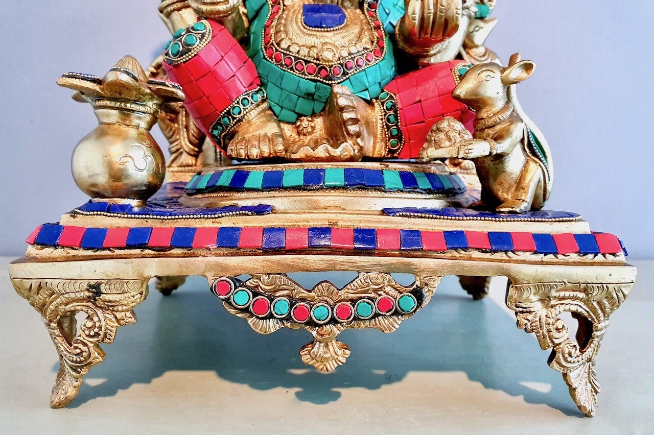 In zijn Maha-gedaante [Mahā] (autonome gedaante, heeft vier armen) is Ganesha één van de leden van de Maha Lakshmi darbaara [darbāra] (“het huis van Maha Lakshmi”: Maha Ganesha, Maha Lakshmi en Maha Sarasvati). In zijn niet-autonome gedaante (“aardse gedaante”, met twee armen) is Hij de zoon van Shiva [Śiva] en Parvati [Pārvatī]. In sommige verhalen wordt Hij gezien als de echtgenoot van Riddhi en/of Siddhi.