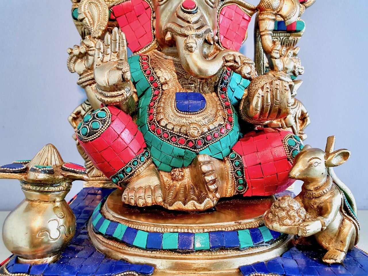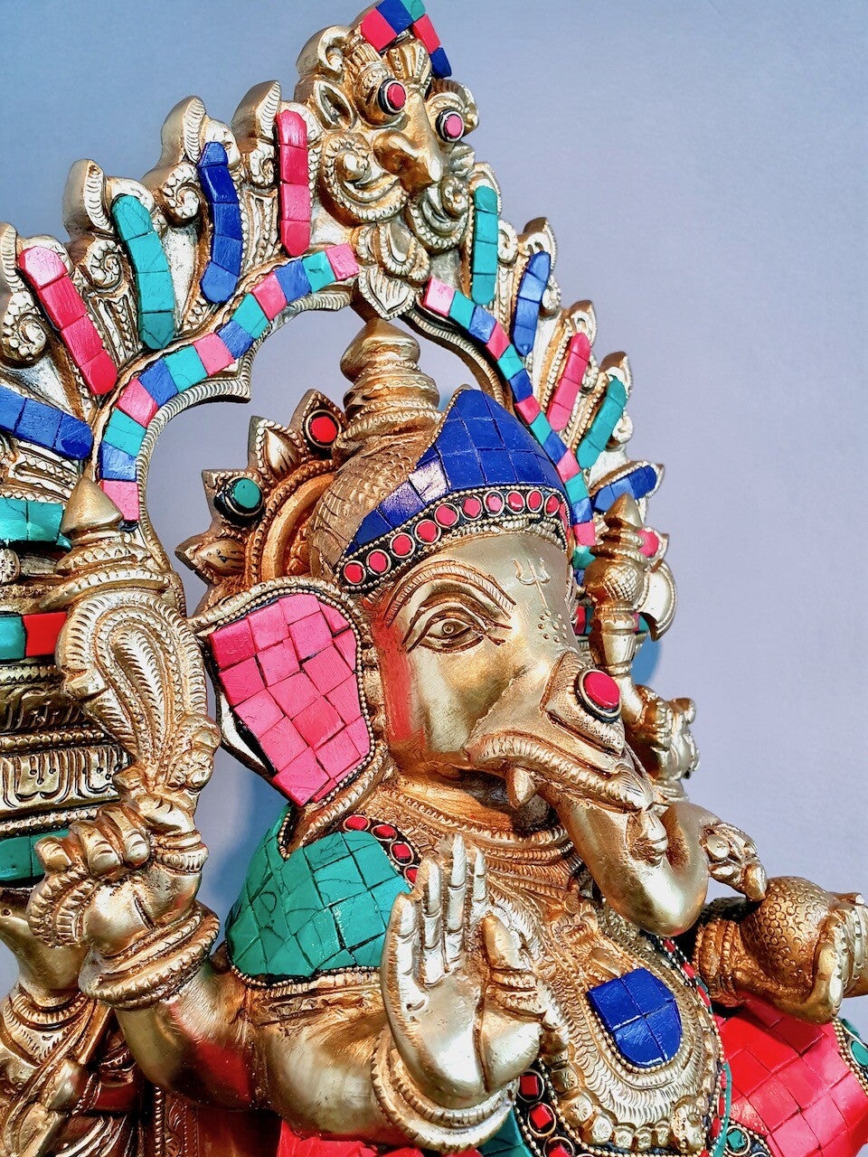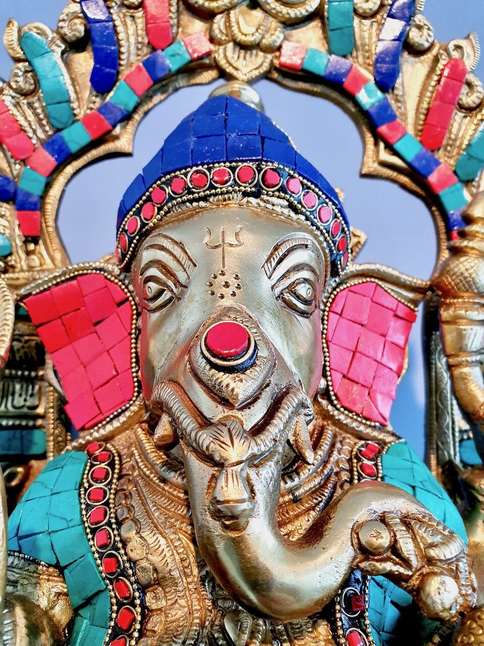 Ganesha wordt meestal afgebeeld in rode of gele kleding. In zijn Maha-gedaante (autonome gedaante, met vier armen) draagt Hij geel. Geel symboliseert zuiverheid, vrede en waarheid. In zijn niet-autonome gedaante (met twee armen) draagt Hij meestal rood. Rood symboliseert de activiteiten in de stoffelijke wereld.