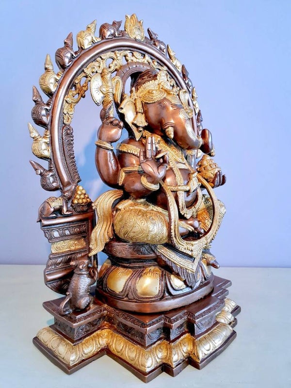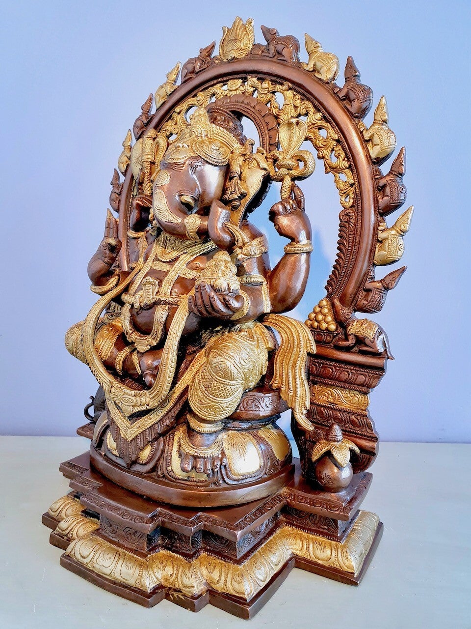In zijn Maha-gedaante [Mahā] (autonome gedaante, heeft vier armen) is Ganesha één van de leden van de Maha Lakshmi darbaara [darbāra] (“het huis van Maha Lakshmi”: Maha Ganesha, Maha Lakshmi en Maha Sarasvati). In zijn niet-autonome gedaante (“aardse gedaante”, met twee armen) is Hij de zoon van Shiva [Śiva] en Parvati [Pārvatī]. In sommige verhalen wordt Hij gezien als de echtgenoot van Riddhi en/of Siddhi.
