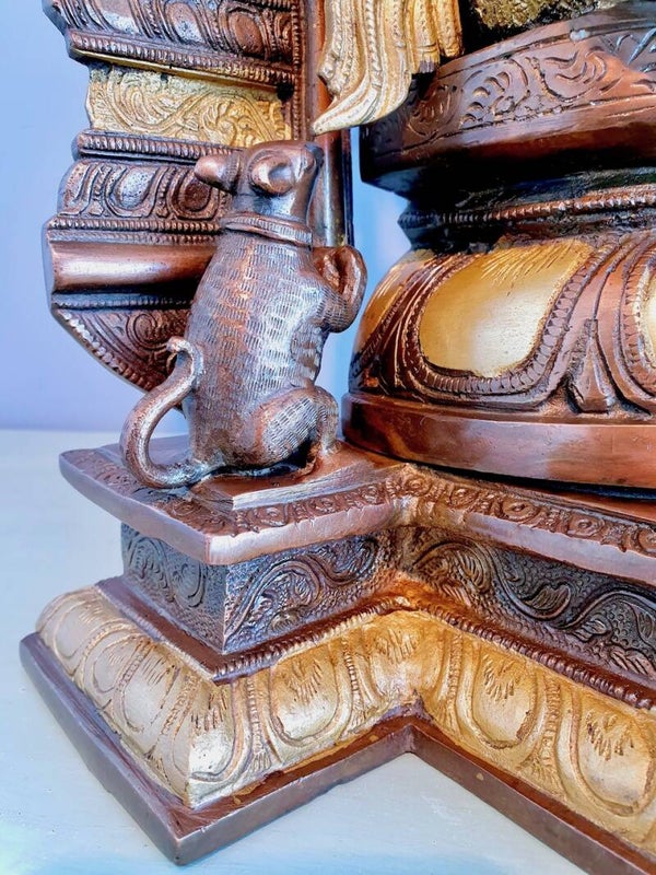 Een muis naast de voeten van Ganesha
