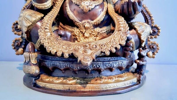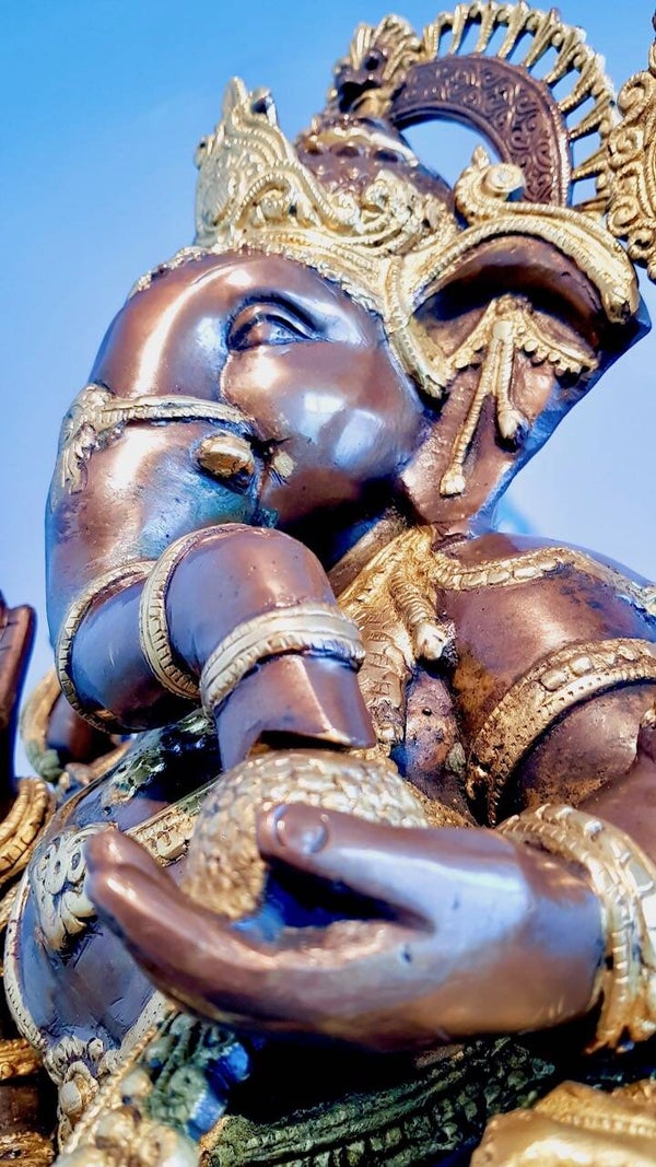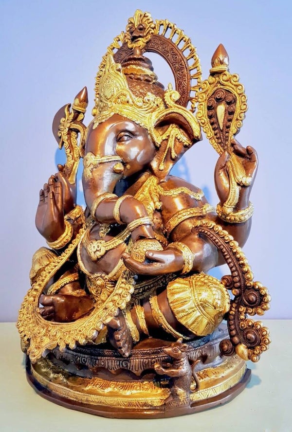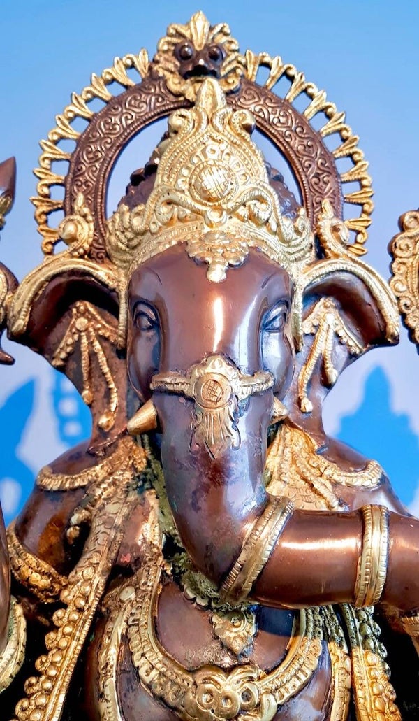 In zijn Maha-gedaante [Mahā] (autonome gedaante, heeft vier armen) is Ganesha één van de leden van de Maha Lakshmi darbaara [darbāra] (“het huis van Maha Lakshmi”: Maha Ganesha, Maha Lakshmi en Maha Sarasvati). In zijn niet-autonome gedaante (“aardse gedaante”, met twee armen) is Hij de zoon van Shiva [Śiva] en Parvati [Pārvatī]. In sommige verhalen wordt Hij gezien als de echtgenoot van Riddhi en/of Siddhi.
