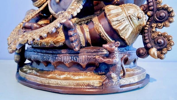 Een muis symboliseert ego. Net als een muis van alles kapot knaagt, knaagt het ego aan al het goede in een persoon. De muis staat naast de voeten van Ganesha. Dit symboliseert overgave van het ego. De muis is ook het rijdier van Ganesha. Dit leert ons dat het verstand het ego moet domineren als we vooruit willen komen.