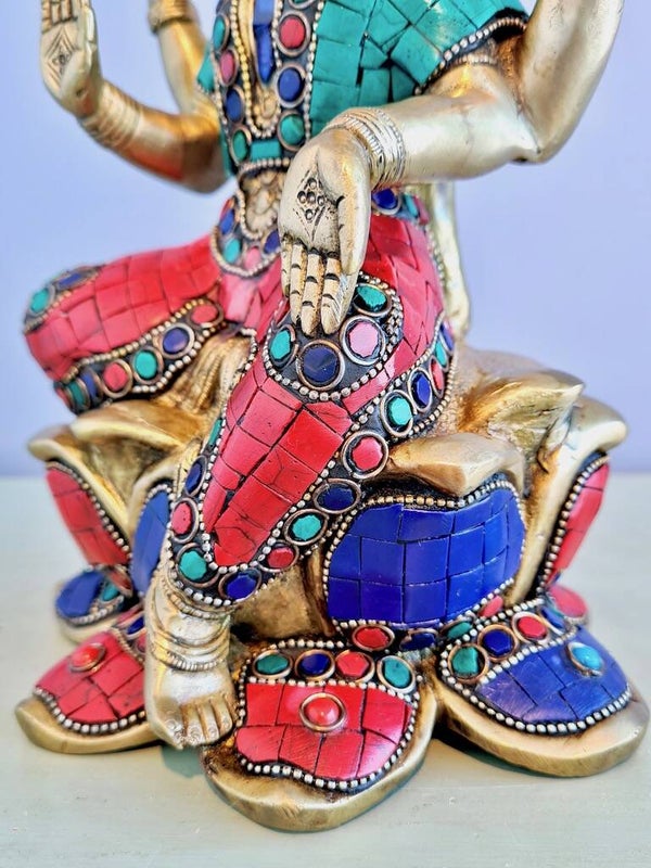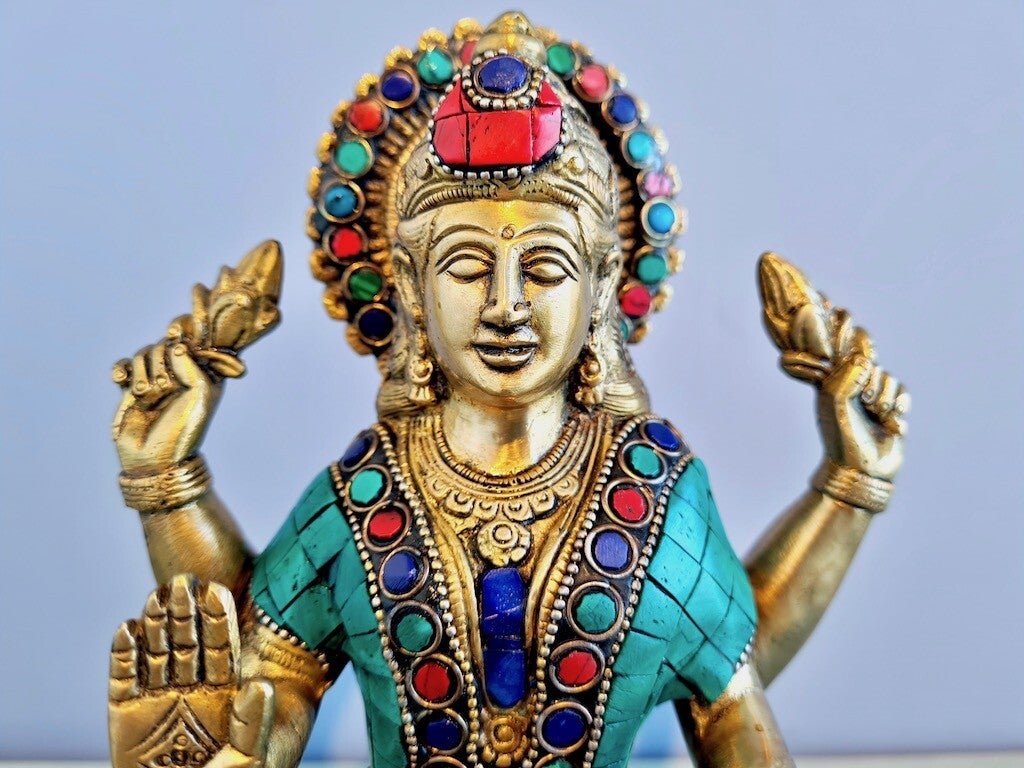 Godin Lakshmi wordt altijd afgebeeld met 4 armen. Dit duidt op haar bezigheden in zowel de goddelijke als aardse wereld. Deze armen staan voor bewustzijn, wijsheid, spreuken en ego. In volgorde van ego naar bewustzijn. Godin Lakshmi leert ons deze vier aspecten te gebruiken om overvloed aan te trekken.