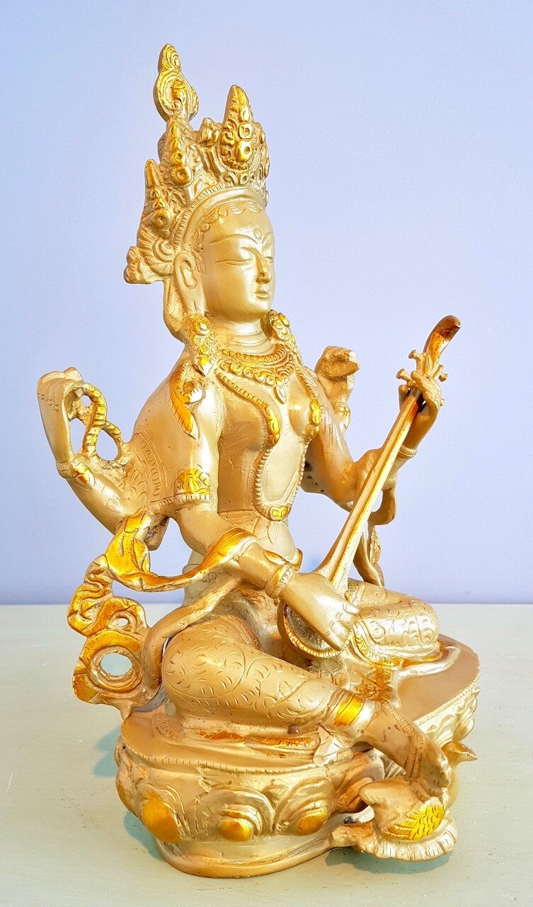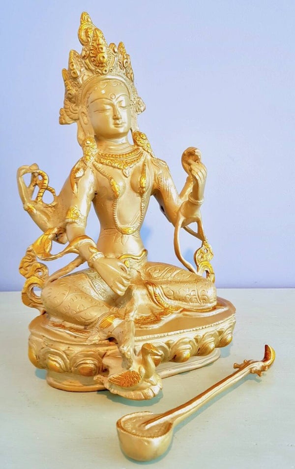 Sarasvati (Saraswati) (Sanskriet: सरस्वती) wordt in de Vedas beschouwd als moedergodin van de stroom, van oorspronkelijk de oeroceaan, het vrouwelijk aspect van schepping, de vruchtbaarheid. Daarna is zij, voornamelijk als Hindoeïstische godheid, de godin van kennis en kunst, muziek en dichtkunst, wijsheid, schrift en literatuur. Want dat alles borrelt als vanzelf op uit het aldoordringend water van de oeroceaan, de bron van alle leven.