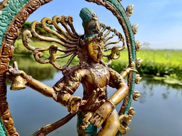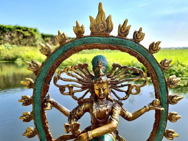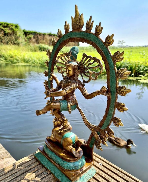 In zijn verste linkerhand houdt hij een vlam: vuur als symbool voor de vernietiging. Zonder vernietiging is geen schepping mogelijk. De tweede rechterhand houdt hij in een geruststellend, groetend handgebaar : de bekende 'Abhaya mudra', "vrees niet": deze symboliseert de instandhouding van de wereld.
