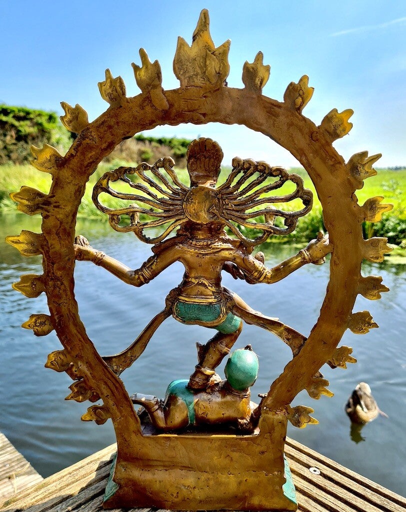 De tweede linkerhand wijst naar het opgeheven linkerbeen: symbolisch voor de bevrijding van illusie (wanneer God het wil). De vorm van deze arm herinnert tevens aan de slurf van Ganesha en is een symbool van kracht. De vier armen, typisch voor Indische goden, zijn natuurlijk ook symbolisch voor de almacht van Shiva. Onder zijn rechtervoet tenslotte bedwingt hij moeiteloos de dwerg-demon 'Apasmara-Purusha', de 'onwetende' of 'vergeetachtige' ziel.