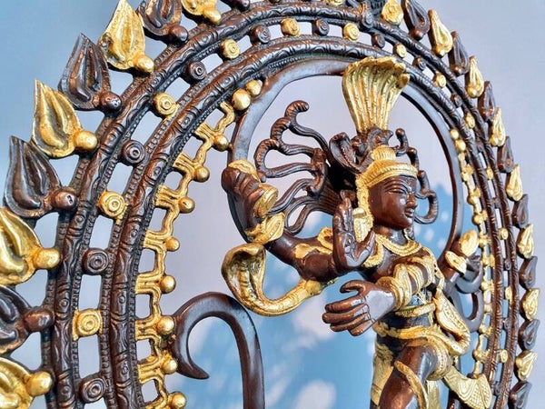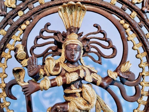 Rond het beeld een cirkel van vuur. Typische attributen van Shiva zijn het derde oog op het voorhoofd (bovennatuurlijke kracht door meditatie) en de verschillende cobra's (eeuwig leven). De twee verschillende oorringen aan linker- en rechterzijde zijn symbolisch voor de vereniging van mannelijke en vrouwelijke aspecten. Shiva's uitgespreide haren (dreadlocks) verwijzen naar zijn ascetische levensstijl. Volgens de legende ving Shiva de Ganges op in zijn haren.