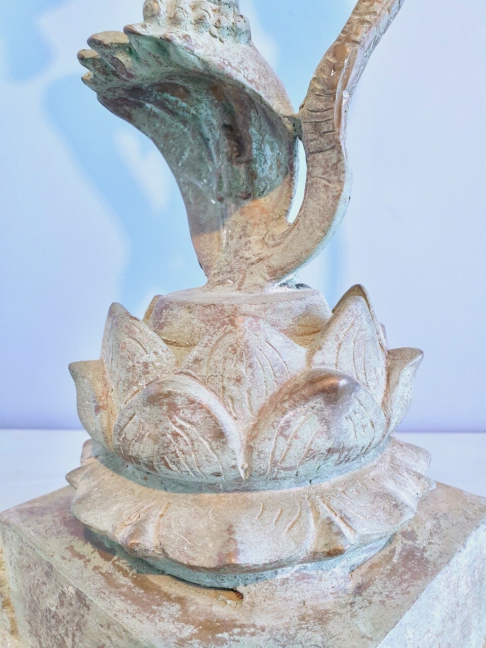 Materiaal: Brons, mix in handwerk, oldlook zachtgroen. Enkele leeftijdssporen aanwezig.