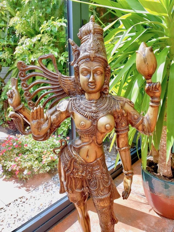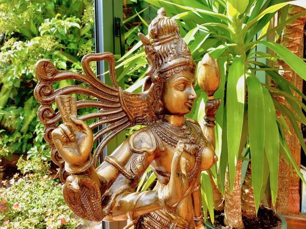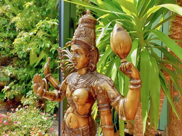 Ardhanarishvara betekent zowel vrouw als man. Hun beeld, samen één gestalte vormend, symboliseert dat man en vrouw gelijkwaardig zijn. Dat elk van hen beide hoedanigheden - die van man zowel als die van vrouw - in zich verenigt. Kijk maar eens goed, en je ziet zowel de vrouwelijke helft als de mannelijke helft terug in één verschijning, dit prachtige exemplaar!