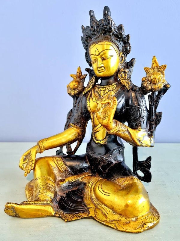 Onze onbewuste gedachten, gevoelens, conditioneringen worden overstegen. Door de strijd tegen al wat onzuiver is groeit de bloem (de zuivere geest en de oorspronkelijke ware natuur van de mens) en wordt krachtig en groeit naar het licht. Tara helpt ons leven in evenwicht te brengen en de verschillende delen van ons bestaan op elkaar af te stemmen. Wie een laag zelfbeeld heeft, kan zichzelf voorstellen in een groen licht en a.h.w. de gedaante van Tara aannemen. Ons gevoel van eigenliefde en eigenwaarde worden sterker, onze wijsheid en inzicht groeien. Haar uitstekende voet symboliseert haar bereidheid tot handelen.