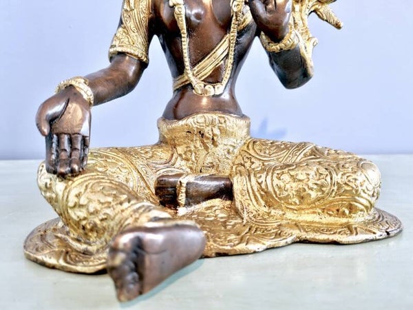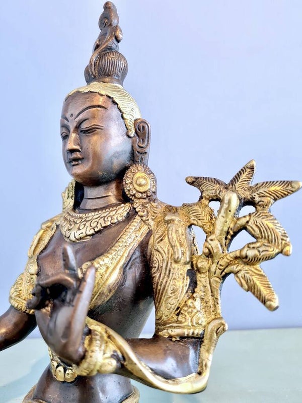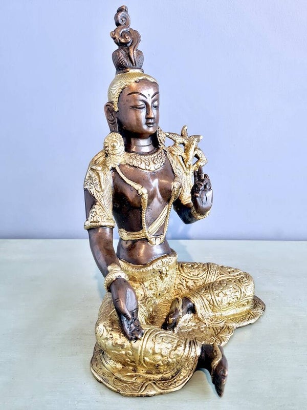Ze is rijkelijk voorzien van sieraden, een lotusbloem en vele andere details.