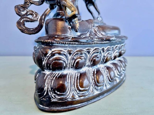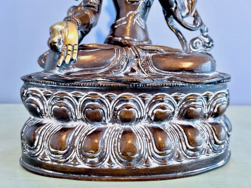 Materiaal: Brons, mat bruin, goud kleur patina met witte old look accenten.