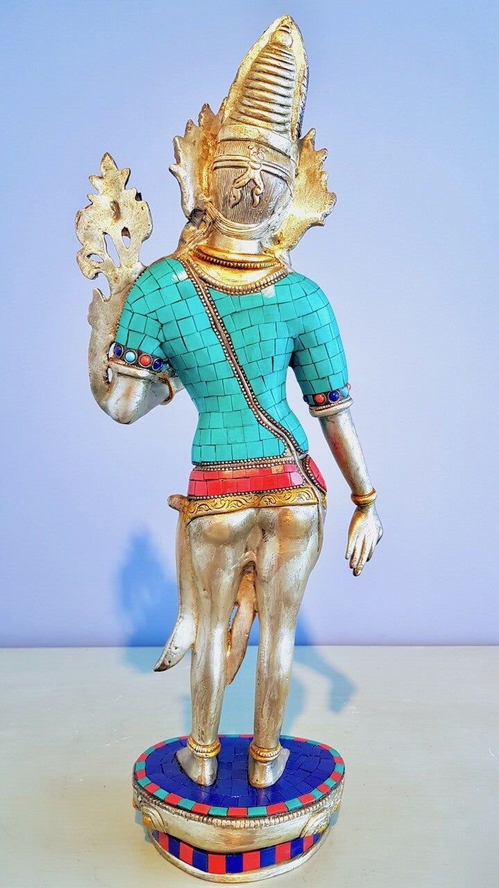 Materiaal: Brons, zilveren patina, gouden accenten en kleurrijk stonework art. Gemaakt door kunstenaars.
