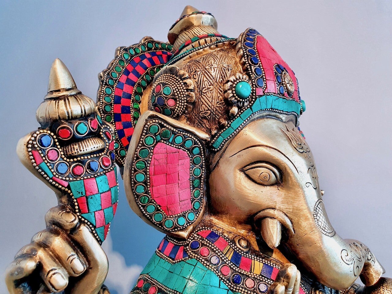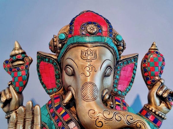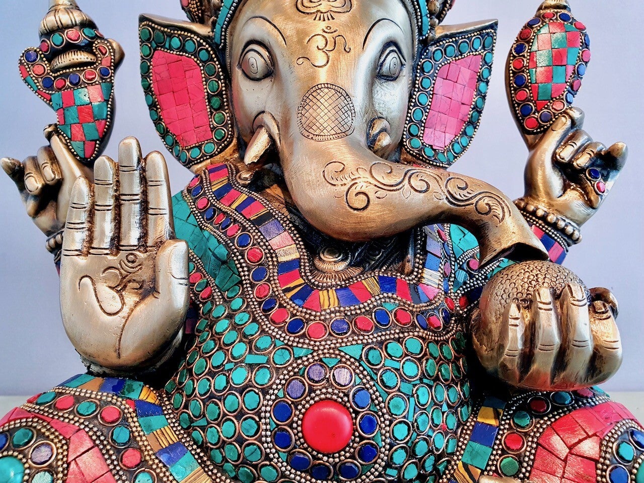 Dit voortreffelijke kunstwerk is werkelijk vakmanschap! Indiase kunstenaars maken dit beeld in enkele weken helemaal met de hand. Van gieting, tot laatste steen. Zo krijgt deze zware Ganesha van bijna 14 kg aan brons alle liefdevolle aandacht voordat het bij jou staat te pronken. Exclusief bij Boeddha Centre!