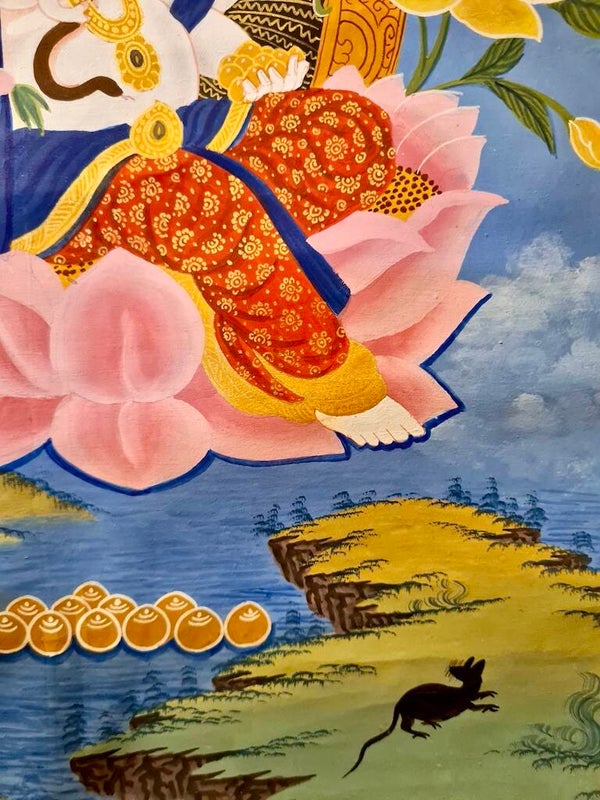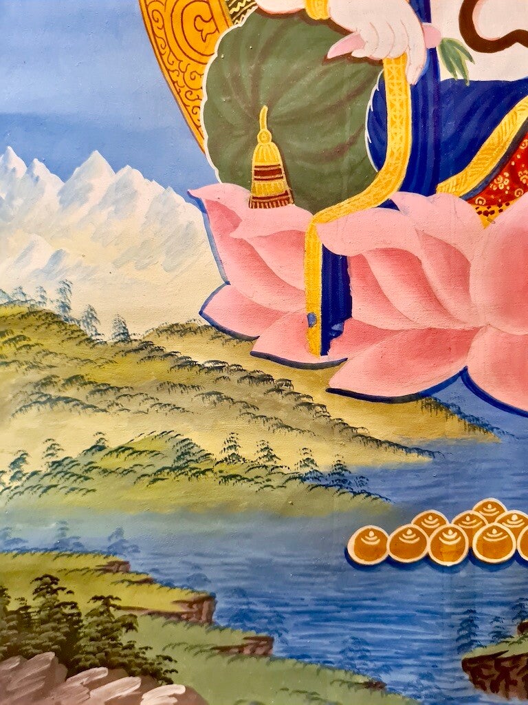 Het schilderen van thangka's was, en is, een hoog ontwikkelde en belangrijke uitdrukking van religieuze expressie in Tibet. Het is een medium waardoor de hoogste idealen van het boeddhisme naar buiten geroepen worden en tot leven worden gebracht. Een afbeelding van een Boeddha functioneert als een ‘landkaart’ bij onderricht. Vroeger trokken monniken van dorp naar dorp om daar, aan de hand van thangka’s die ze opgerold met zich meedroegen, de leer van de Boeddha uit te leggen.