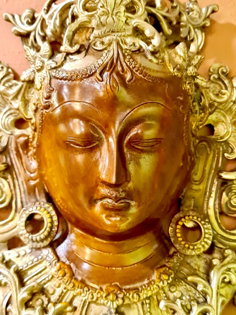 Een werkelijk bijzonder en exclusief bronzen masker van Boeddha in meditatieve staat.