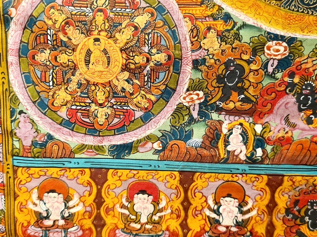 Deze thangka is zeer gedetailleerd geschilderd en je ontdekt elke keer weer nieuwe details. Ook is deze thangka beschilderd met goud. De thangka is origineel met de hand geschilderd en er zijn geen restauraties aan gedaan.