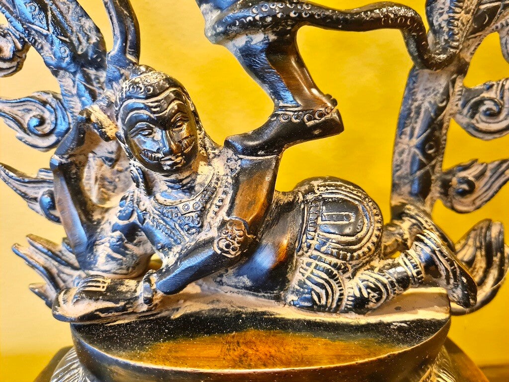 Materiaal: Brons, drie kleuren accenten: groen, bruin en old look zandkleur effecten.