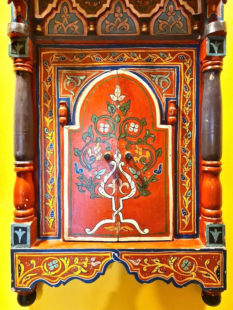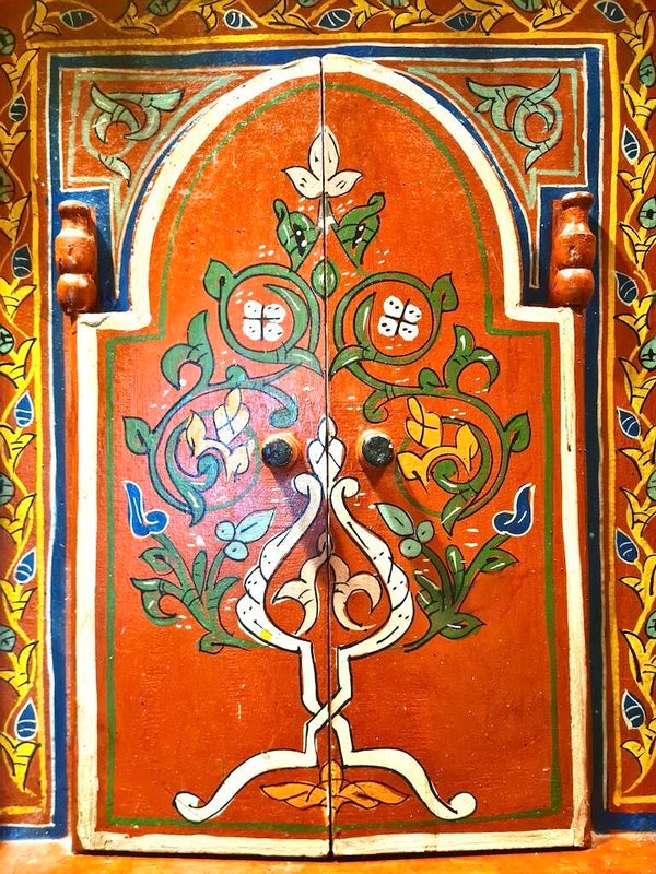 Een schitterende polychrome geschilderde Marokkaanse spiegel.