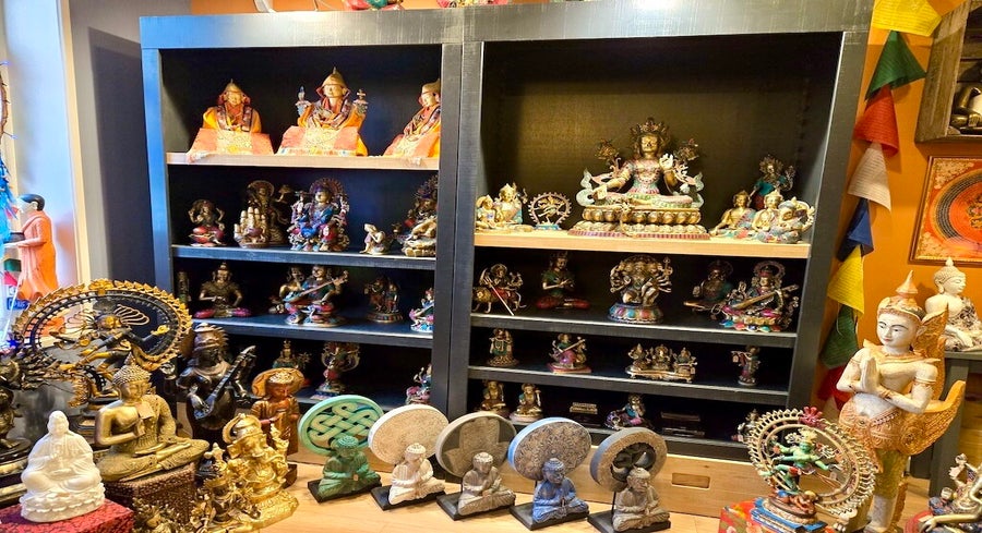 Natuurlijk hadden we al wat mooie beelden staan, maar door deze verzamelde cadeautjes begonnen onze bezoekers te vragen of we ook beelden verkochten. Standaard zeiden we dat het niet het geval was, totdat we 'toevallig' in aanmerking kwamen met iemand die beschikte over een enorme groothandel in oosterse artikelen.